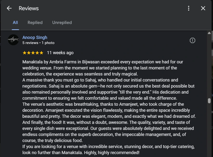Ambria Pushpanjali - Best Wedding venue in South Delhi Testimonial Image 14