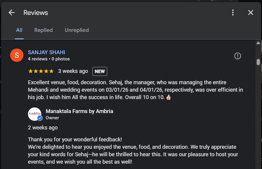 Ambria Pushpanjali - Best Wedding venue in South Delhi Testimonial Image 16