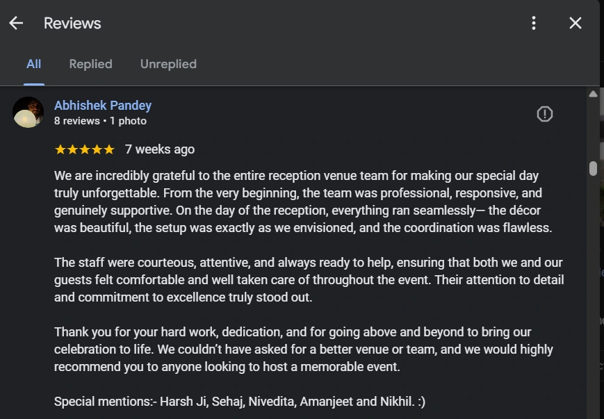 Ambria Pushpanjali - Best Wedding venue in South Delhi Testimonial Image 12
