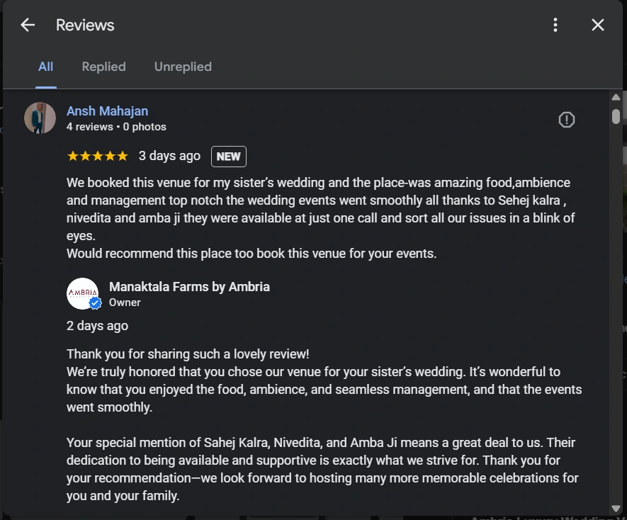 Ambria Pushpanjali - Best Wedding venue in South Delhi Testimonial Image 16